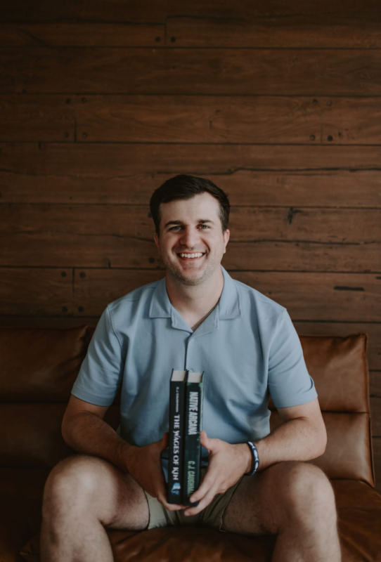Across his work, C.J. tells stories that combine myth, history, and human conflict, often exploring how the past continues to shape the present. His projects frequently center on strong characters navigating political intrigue, cultural identity, and generational trauma, with a tone that blends grounded realism with elements of historical adventure, supernatural horror, and epic fantasy. Beyond writing, C.J. is passionate about education and storytelling as a means of empowerment. He currently works as an English teacher in Coweta, Oklahoma, where he encourages students to develop their own creative voices through reading and writing.